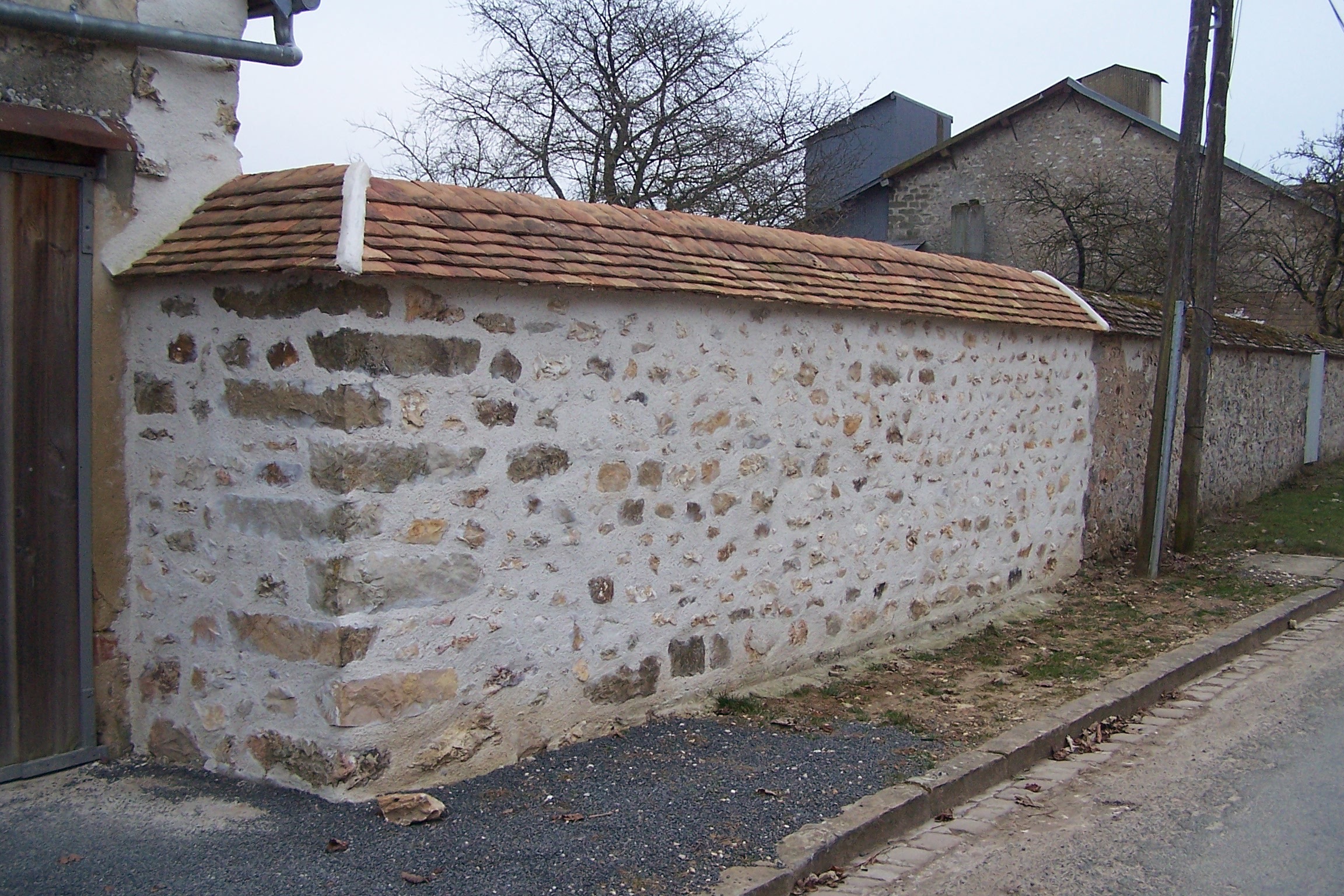 Création d'un mur en pierre ou parpaing, dalle de béton, abri de jardin.